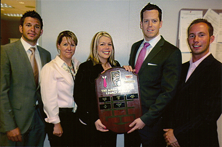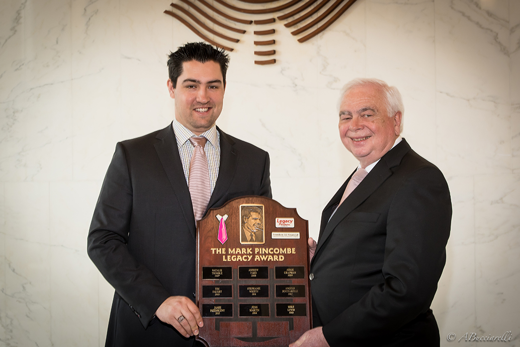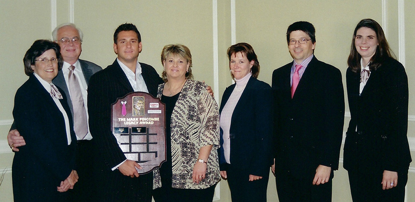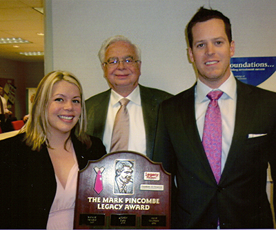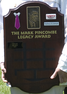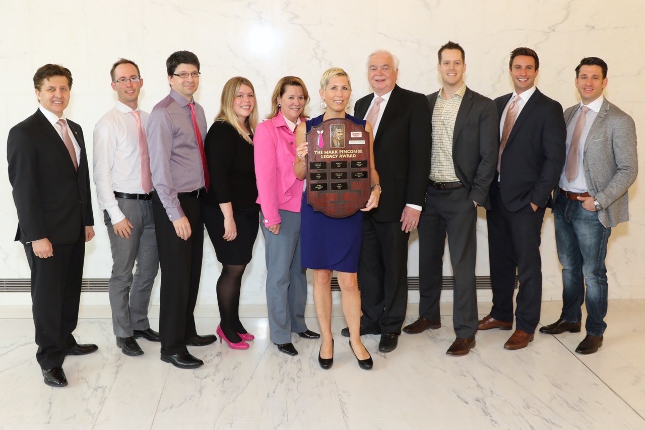 In addition to a cash award from the local Freedom 55 office and one of Mark's pink ties courtesy of Andrew Douglas Clothier, the award winner picks the charities who will receive the annual donation from The Mark Pincombe Legacy Fund (a foundation funded by members of the Legacy Partner family). |